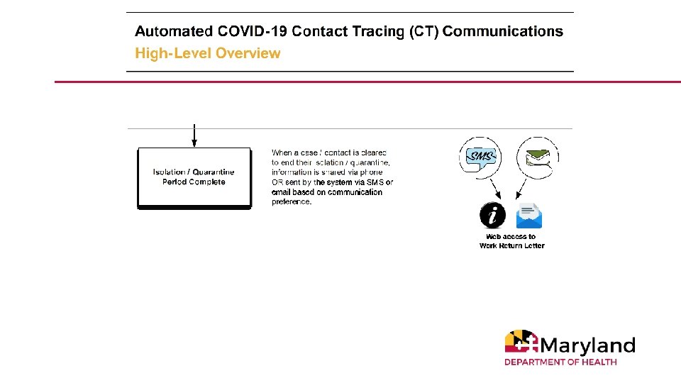 Contact Tracing in Maryland • Conducted by Maryland’s 24 local health departments and the National Opinion Research Center at the University of Chicago • 1, 350 contact tracers conduct interviews with cases and contacts • Cases are asked about their health, whereabouts during incubation period (14 days before symptom onset) and infectious period (2 days before symptom onset until current time for cases) and close contacts • Contacts are asked about their health, whereabouts • For both cases and contacts, guidance provided for isolation/quarantine including access to resources 9