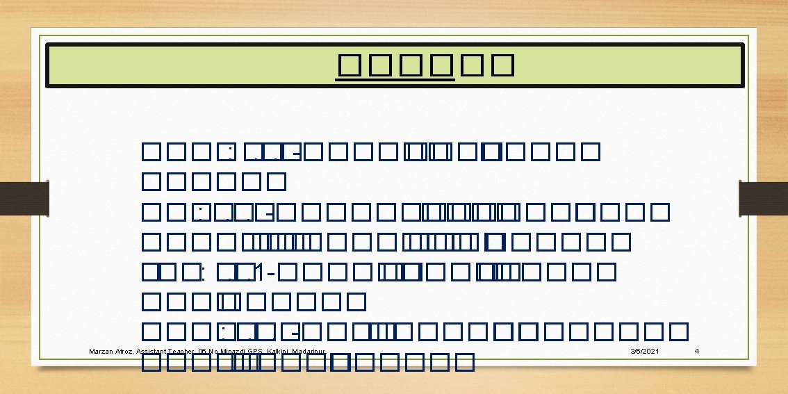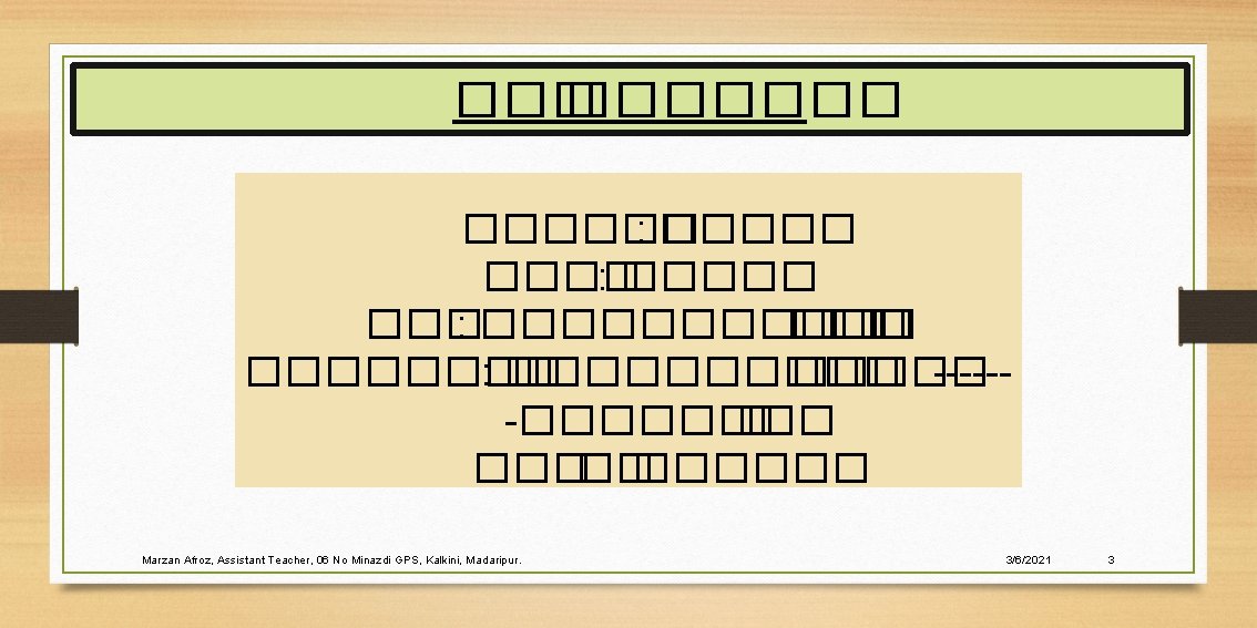 Marzan Afroz Assistant Teacher 06 No Minazdi GPS Slides: 13 Download presentation ������� Marzan Afroz, Assistant Teacher, 06 No Minazdi GPS, Kalkini, Madaripur. 3/6/2021 1 ������ ������ ����� � �������� , ����� E-mail: marzanbelayet @gmail. com Marzan Afroz, Assistant Teacher, 06 No Minazdi GPS, Kalkini, Madaripur. 3/6/2021 2 �� ���� ��� ������ ���������� ? ������� ����� Marzan Afroz, Assistant Teacher, 06 No Minazdi GPS, Kalkini, Madaripur. 3/6/2021 5 ����� Marzan Afroz, Assistant Teacher, 06 No Minazdi GPS, Kalkini, Madaripur. 3/6/2021 6 ������ ��� ���� � Marzan Afroz, Assistant Teacher, 06 No Minazdi GPS, Kalkini, Madaripur. 3/6/2021 7 ����� ����� Marzan Afroz, Assistant Teacher, 06 No Minazdi GPS, Kalkini, Madaripur. 3/6/2021 8 ������� ����� - Marzan Afroz, Assistant Teacher, 06 No Minazdi GPS, Kalkini, Madaripur. 3/6/2021 9 ���� ������ ����� ���� Marzan Afroz, Assistant Teacher, 06 No Minazdi GPS, Kalkini, Madaripur. 3/6/2021 10 ���� �� �� Marzan Afroz, Assistant Teacher, 06 No Minazdi GPS, Kalkini, Madaripur. �� ��� � 3/6/2021 11 ������� Marzan Afroz, Assistant Teacher, 06 No Minazdi GPS, Kalkini, Madaripur. 3/6/2021 13
