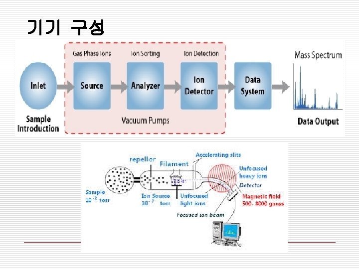 Background o Mass spectrometry (Mass Spec or MS) uses high energy electrons to break a molecule into fragments. -이온화, 분자의 분해된 조각 o Separation and analysis of the fragments provides information about: n Molecular weight n Structure -질량대 전하비(mass-to-charge rato) -분자질량, 분자구조 예측