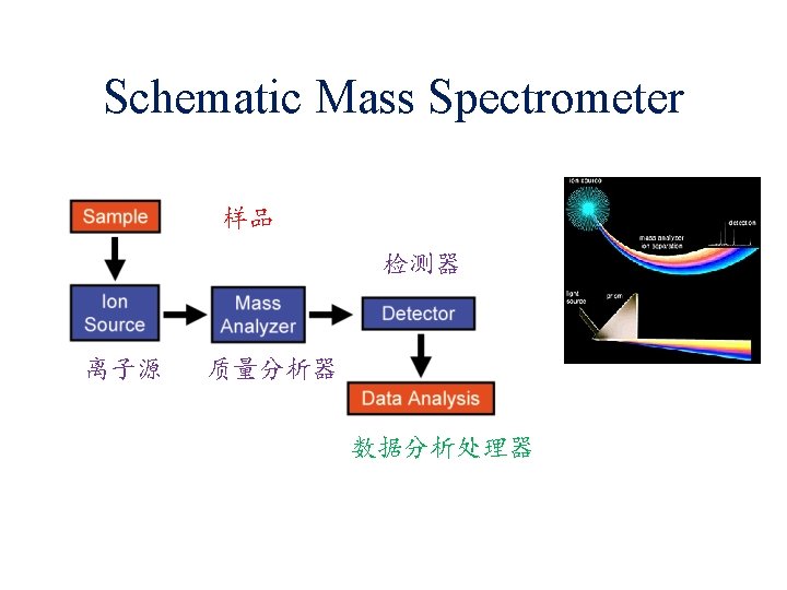Electron Bomb Ionization ( EI ) Sample is heated and energized by a beam of electrons, usually gives a molecular ion (M+) and a lot of fragments。 (M-R 2)+ Mass Spectrum (M-R 1)+ M+ (M-R 3)+