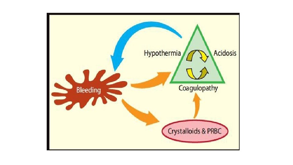Important At the onset - aggressive fluid replacement and bleeding control can reduce the tissue injury, inflammation, and hypoperfusion Untimely or incomplete control of massive bleeding- systemic consumptive coagulopathy with hemodilution and endothelial damage If uncorrected, concurrent hypothermia and acidosis can further exacerbate coagulopathy and lead to irreversible multiorgan failure (MOF).
