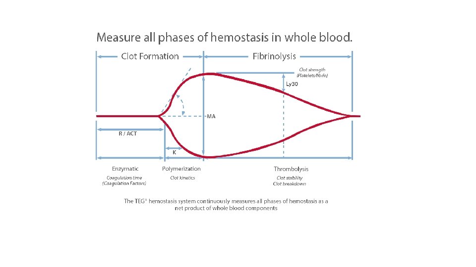 Viscoelastic whole-blood assays • TEG® and ROTEM® • provide information on the coagulation process through the graphic display of clot initiation, propagation and lysis. • used to guide transfusion of blood components