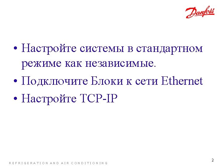 MasterSlave REFRIGERATION AND AIR CONDITIONING 1 REFRIGERATION AND Slides: 12 Download presentation Настройка Master-Slave REFRIGERATION AND AIR CONDITIONING 1 Выключите Блок REFRIGERATION AND AIR CONDITIONING 8 Включите Блок REFRIGERATION AND AIR CONDITIONING 10