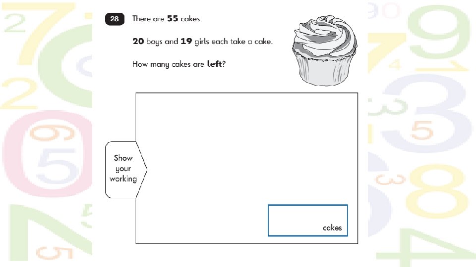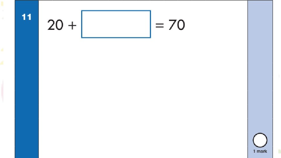 Show Stopper – Problem Solving • Sophie went to the shop and brought 5 bananas and 6 apples. How many pieces of fruit did she buy altogether? • Altogether Sophie and Ethan have 13 apples. Sophie has 6 apples. How many has Ethan got? • Sophie and Ethan have 20 apples. They both have an even amount each? How many could they have? 5 + 6 = ? 6 + ? = 13 ? + ? = 20