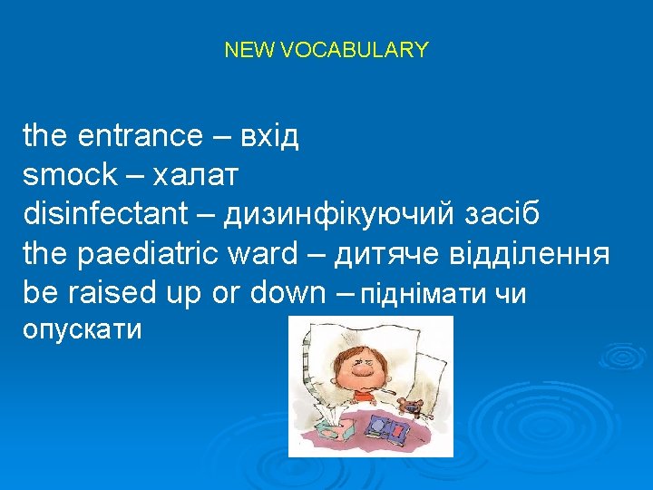F Miss Alison took her class for an excursion to the policlinics last week. T Mrs Brown met the children at the entrance. F Children didn’t put their white smock on as all the doctors who worked there. F People come to the hospital only when they need extra help to get well. T Children were smelling disinfectant the hospital floor washed with. T Children usually stay in the paediatric ward when they are in hospital.