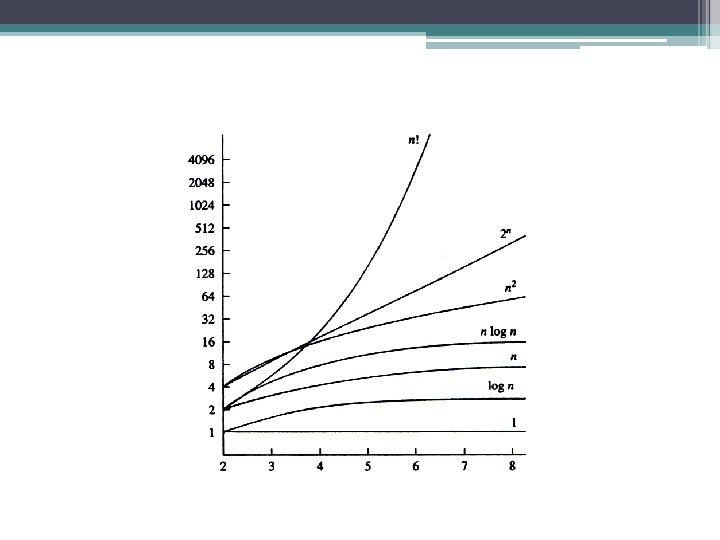 Nilai masing-masing fungsi untuk setiap nilai n log n n 2 n 3 2 n n! 0 1 1 2 2 4 8 4 2 2 4 8 16 64 16 24 3 9 24 64 512 256 362880 4 16 64 256 4096 65536 209227888000 5 32 160 1024 32768 4294967296 (terlalu besar)