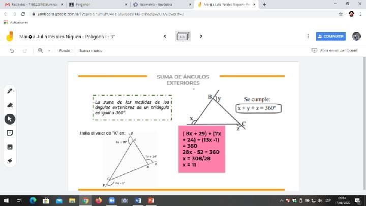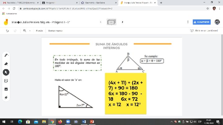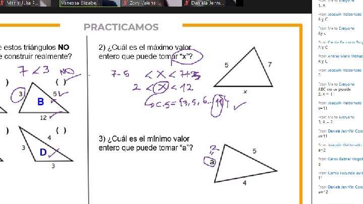El día de hoy realizaremos algunas actividades que nos permitirán recordar las propiedades de los triángulos aprendidas en años anteriores. Desarrolla en equipo la ficha “Actividad grupal”. Utilicen el geogebra.