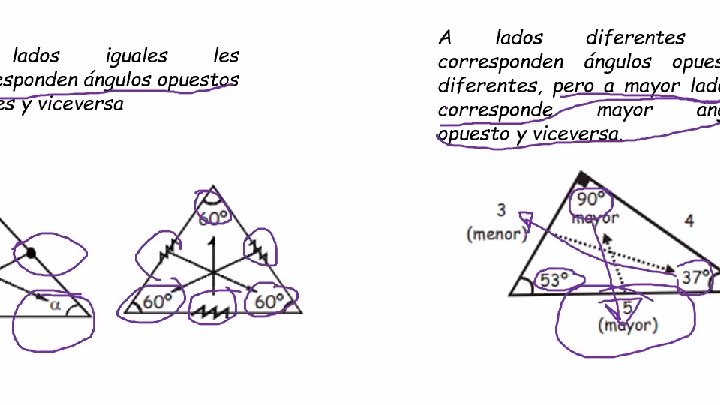 CORRESPONDENCIA A lados iguales corresponden ángulos opuestos iguales y viceversa A lados diferentes les corresponden ángulos opuestos diferentes, pero a mayor lado le corresponde mayor ángulo opuesto y viceversa.