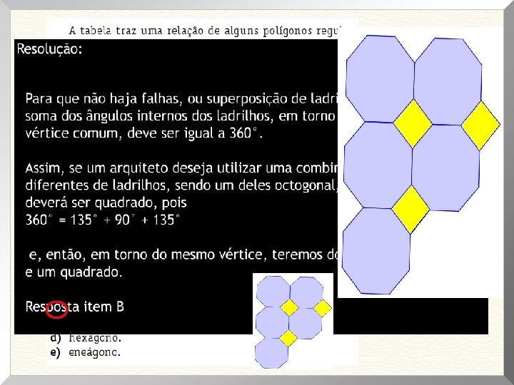 REVISÃO ENEM – 2014 – QUESTÃO 03 QUESTÃO 140 prova cinza (2° dia) – ENEM 2013 Ciente dessa responsabilidade e com base na experiência adquirida com pesagens, um caminhoneiro sabe que seu caminhão pode carregar, no máximo, 1 500 telhas ou 1 200 tijolos. Considerando esse caminhão carregado com 900 telhas, quantos tijolos, no máximo, podem ser acrescentados à carga de modo a não ultrapassar a carga máxima do caminhão? A) 300 tijolos B ) 360 tijolos C ) 400 tijolos D ) 480 tijolos E ) 600 tijolos Finalmente, alternativa D.