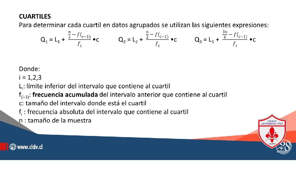 OBJETIVO DE APRENDIZAJE: Desarrollar ejercicios simples aplicados a las medidas de posición para datos agrupados (en tablas).