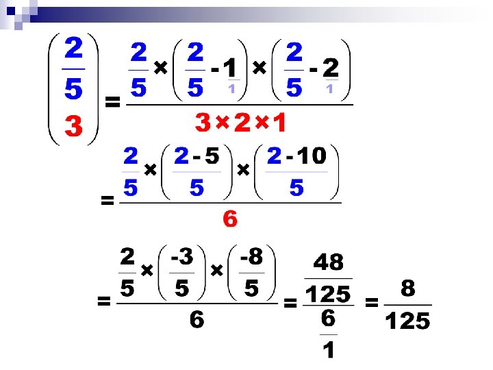 Variación – Permutación - Combinación n Variación: El suceso cambia al cambiar el orden o los elementos n Permutación: Sólo puede cambiarse el orden n Combinación El suceso cambia al cambiar los elementos