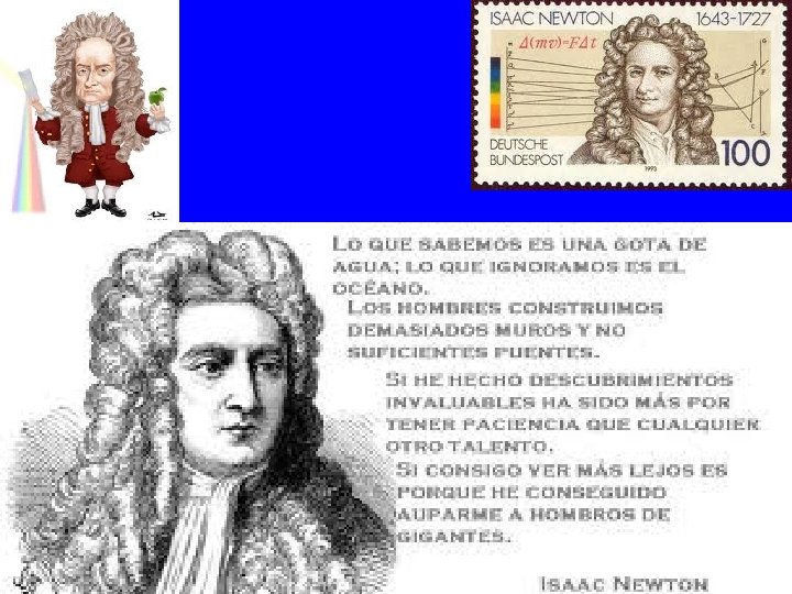 • En 1667 se convirtió en profesor de Matemáticas en Cambridge. • “Principios matemáticos de la filosofía natural” fue el resultado de sus descubrimientos y contenía tres apartados: – Las leyes del movimiento. – El movimiento de los cuerpos en gases y líquidos. – La fuerza de la gravitación en el Universo. • Después de esto fue elegido miembro del Parlamento por Cambridge y Director de la casa de la moneda en Inglaterra.
