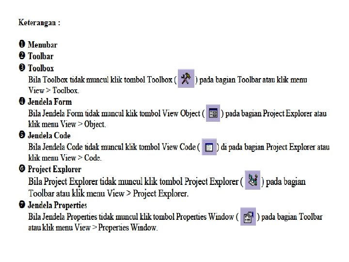 BAB I MENGENAL DAN MENCOBA MICROSOFT VISUAL BASIC (VB) 6. 0 1. Mengenal Ms. Visual Basic 6. 0 2. Cara Memulai Program Microsoft Visual Basic 6. 0