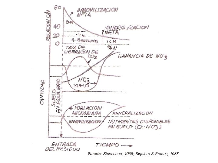 El Índice C/N para evaluar los cambios de C y N en material vegetal incorporado al suelo C/N inicial del residuo C/N del suelo en equilibrio (sale de dividir el C y el N que componen la MOS