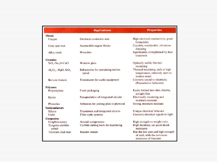 Perkembangan diantara ke lima jenis material diatas terlihat jelas pada industri otomotif, khususnya di USA. Tahun 1978 rata-rata mobil (sedan) di USA beratnya 1800 kg. Dan terdiri dari sekitar 60 % adalah besi dan baja, 10 s/d 20 % plastik dan karet serta 3 s/d 5 % aluminum. Tahun 1993 berat rata-rata mobil (sedan) turun menjadi 1430 kg dan terdiri dari 50 s/d 60 % basi dan baja, 10 s/d 20 % plastik dan karet serta 5 s/d 10 % aluminum.