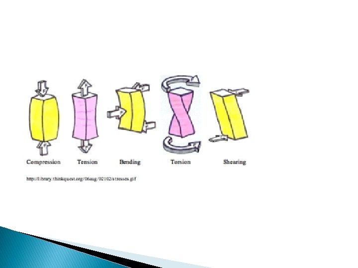 deformations � Three types: elastic, plastic, fracture � ELASTIC: temporary change in shape � PLASTIC: permanent change � FRACTURE: breakage