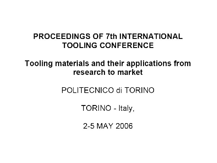 Ecole de Mines, France University of Ljubliana , Ljubliana, Slovania and Politecnico Torino, Italy University of Ljubliana , Ljubliana, Slovania and Universidad Politecnica de Madrid, Spain Uddeholm Tooling, Sweeden