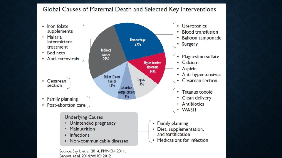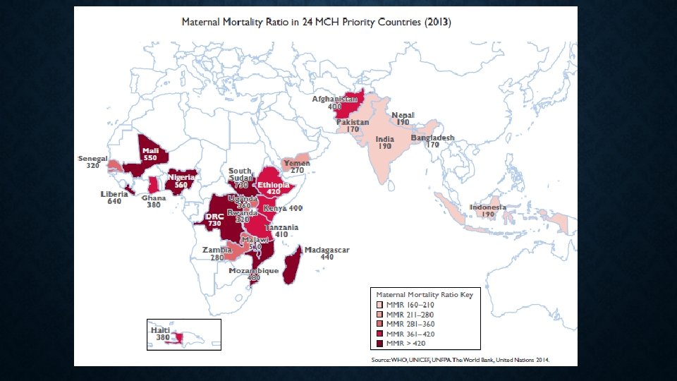 MATERNAL MORTALITY • 289, 000 women worldwide die each year as a result of pregnancy and childbirth. • Most of these deaths are preventable • Most of these women live in poor nations, and the disparities are immense: • the lifetime risk of maternal mortality for a woman living in sub-Saharan Africa is over 47 times greater than for a woman living in the United States.