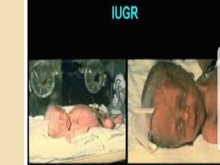 9 -IUGR: refers to poor growth of afetus while in the mothers womb during pregnancy. �Many causes that include Maternal (prepregnancy weight and nutrition status, anemia, alcohol, smoking). Uteroplacental (preeclampsia , multiple gestation , uterine malformation). Fetal (chromosomal abnormalities). �there are 2 major categories of IUGR symmetrical and asymmetrical growth restriction. the goals of management is to deliver the most mature fetus in the best physiological