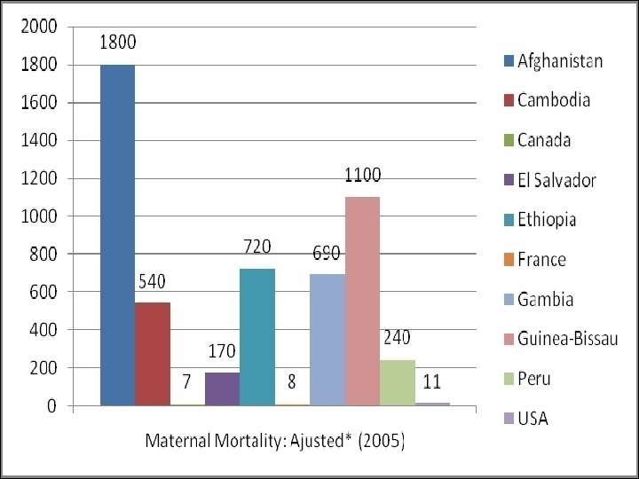 Definitions • Maternal death: death of a woman while pregnant or within 42 days from its end form causes related to or aggravated by pregnancy • Direct maternal death: death from obstetric complications • Indirect maternal death: death resulting from previous disease or disease developed in pregnancy but not caused direct obstetric causes • Late maternal death: death resulting from direct or indirect causes from 42 days to 1 year after delivery (end of pregnancy)