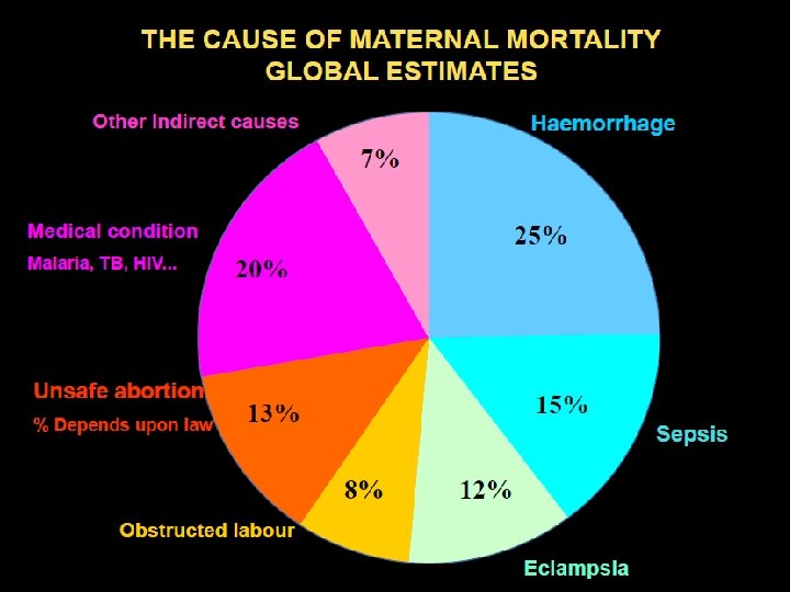Aggravating Factors Chronic anaemia Malnutrition Malaria TB HIV Associated with up to 50% of maternal deaths in high prevalence areas And has doubled MMR in many countries