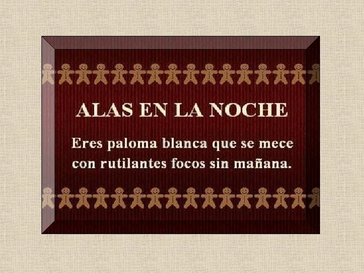 TU FIGURA HUMANA Es tu figura humana estalagmita que se eleva al cielo, su base una peana sobre el suelo, y alegoría espiritual, no un mito, su vértice apuntando al infinito, a una región lejana. . . FINAL Todos los derechos reservados © - 2001 Emma-Margarita R. A. -Valdés