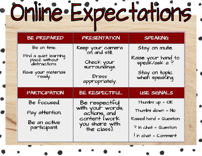 Attendance ❏ ONLINE ATTENDANCE: Teachers will take attendance based on DAILY log ins and engagement in learning activities. ❏ ON CAMPUS ATTENDANCE TIME = 9: 00 a. m. ❏ Students who arrive after 8: 00 will be counted tardy. ❏ Students not present at 9: 00 will be counted absent. ❏ Students who are not present at 9: 00, BUT come in the same day with a note from a doctor or dental office, will be counted present. ❏ To EXCUSE an absence, parents must: Send an email to deidre. espinoza@humbleisd. net OR Call the Absence Line at 281 -641 -1503
