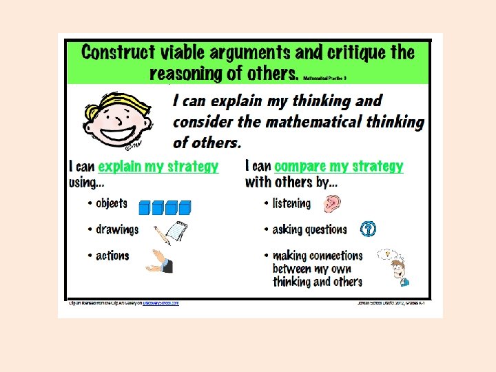 Explain and Understand • “…explain the reasoning used. ” (2 nd year/1 st grade) • “Explain why addition and subtraction strategies work, using place value and the properties of operations. (3 rd year/2 nd grade) • “Understand the relationship between numbers and quantities… (K) • “Understand a fraction as a number on the number line…” (4 th year/3 rd grade)