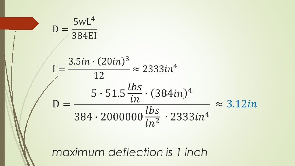 st 1 Consideration: Deflection How much will it bend (deflect) under this load and does that matter?