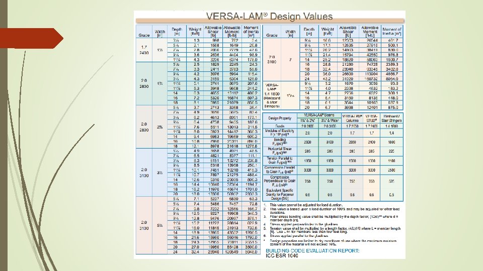 Our 3 -1/2” x 20” VLB is 32’ long with 12’ of tributary • Residential floor load is 50 lbs/ft 2 • Our beam needs to able to carry 12 ft x 50 lbs/ft 2 = 600 lbs/ft of floor load +18 lbs/ft = 618 PLF