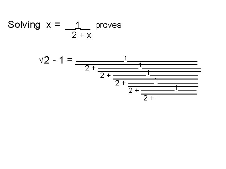 Continued Fractions 2+ 1 _______ 3 + __ 1 5 3 + ___1___ _1_ 7 + 16 instead of 37 __ 16 approximates p to five decimal places.