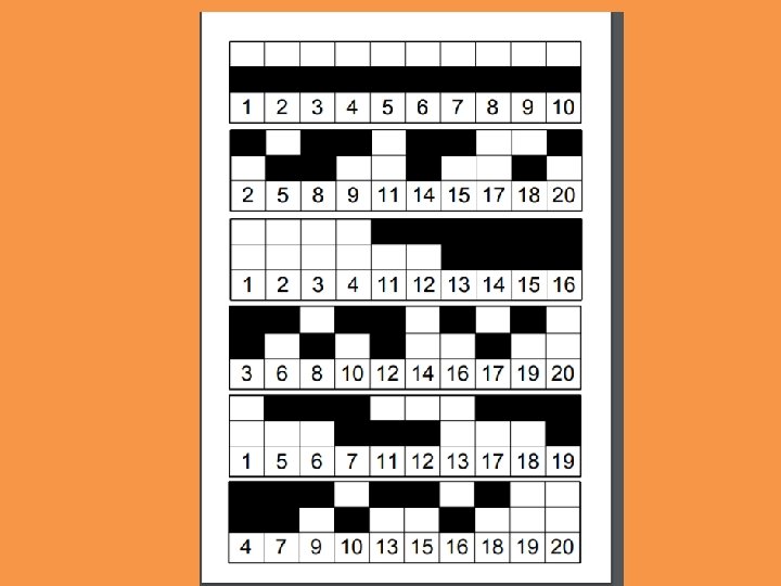 Guess the number We secretly select a number from 1 to 20. We place on the above card those of the cards on the next page that contain our number