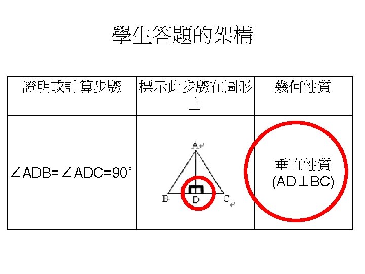 將證明步驟正確串連的知識 Proving ACD=2 ABC when AC=BC