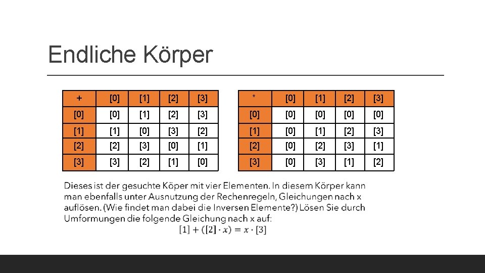 ![Endliche Körper + [0] [1] [2] [3] [1] [0] [3] [2] [2] [3] [0] Endliche Körper + [0] [1] [2] [3] [1] [0] [3] [2] [2] [3] [0]](https://slidetodoc.com/presentation_image_h2/678d7eb6a3b97eb39c3e2a2b042a8c81/image-17.jpg)
