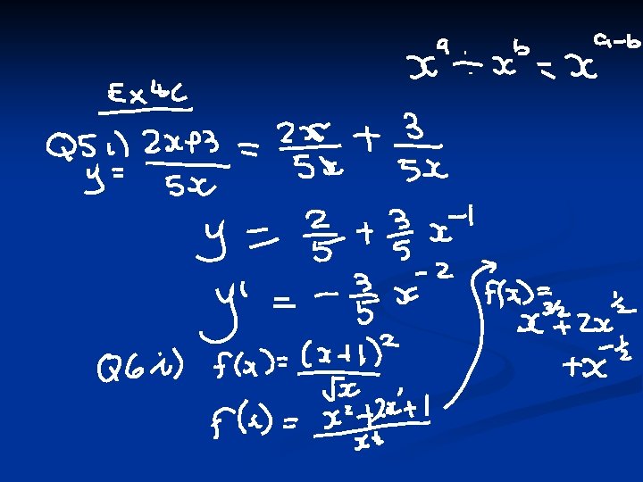 The magic phrase Put the power in front and then drop the power by one!!!!!! n n n We call the gradient function the derivative of the function i. e. dy DON’T WRITE IT LIKE dx THIS dy/dx