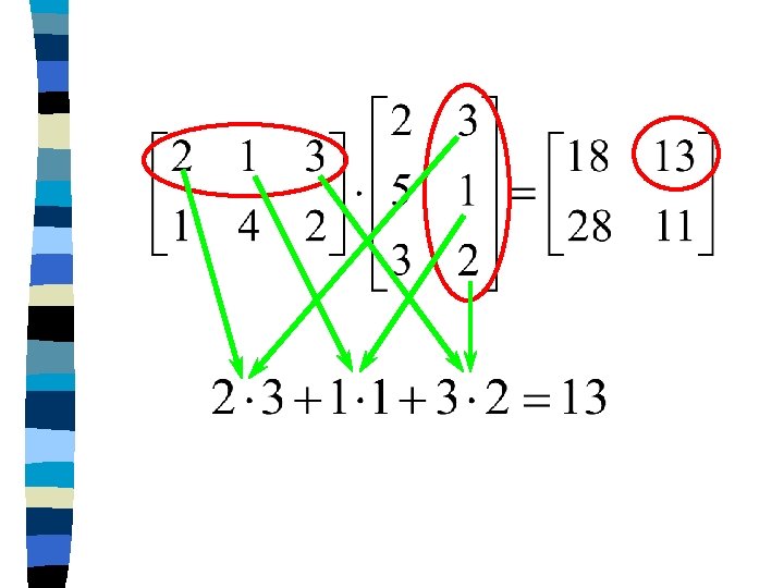 Násobení matic n A(m, n)·B(n, l) = C(m, l) n cij = S air·brj … suma součinů i-tého řádku matice A s j-tým sloupcem matice B n násobit lze pouze matice, ve kterých je počet sloupců první matice roven počtu řádků druhé matice
