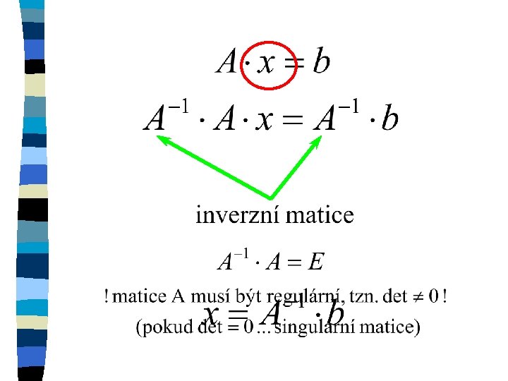 n součin matic A · B n inverze součinu (A · B)-1 n inverze matic A-1 a B-1 n součin inverzních matic B-1 · A-1