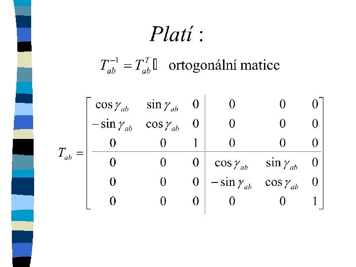Transponovaná matice n A-1 = AT … ortogonální matice n inverzní matice se rovná matici transponované