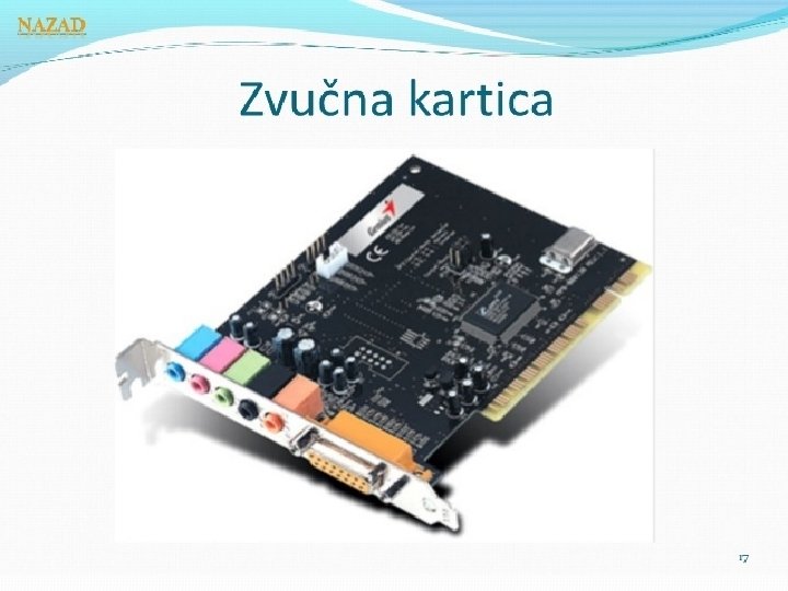 o Matična ploča (engl. motherboard) je zadužena za povezivanje glavnih delova računara u jednu celinu. o Matična ploča je poznata i kao osnovna ploča (engleski motherboard, mainboard), i ona je centralni deo hardvera u računaru. Na nju se ugrađuje (priključuje) sav hardver u računaru, na primer: grafička kartica, mrežna kartica, zvučna kartica, modem, tvrdi disk, RAM.
