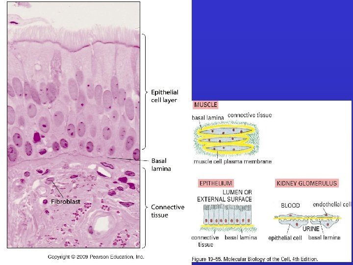 External Lamina • External lamina surrounds muscle cells, adipocytes, and Schwann cells (peripheral nerve supporting cells) • Basal lamina shared by two epithelia in the kidney glomerulus is "free" to function as a molecular filter