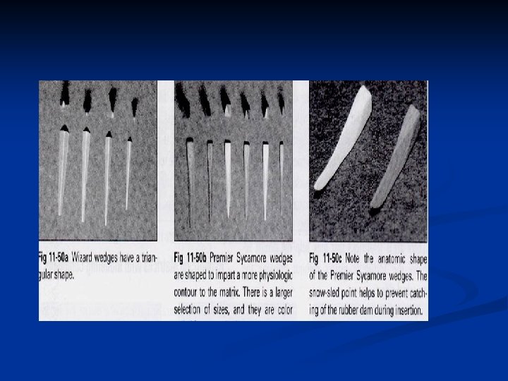 WEDGES Devices preferred for rapid separation. They are third component of the matrix system.