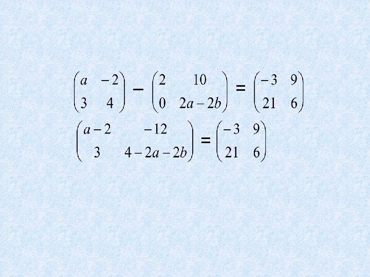 A= dan B = Jika matriks A = matriks B, maka x – 7 = 6 x = 13 2 y = -1 y = -½