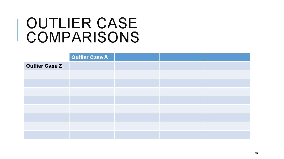 OUTLIER CASE COMPARISONS Outlier Case A Outlier Case Z 39