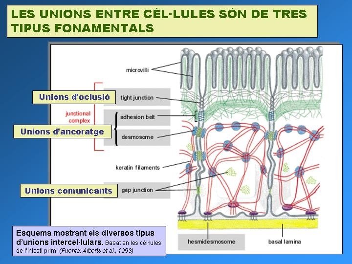 Uniones de la célula con la lámina basal n n Mediadas por las proteínas Integrinas que se unen a las proteínas de la matriz extracelular Existen 2 tipos q q Contactos focales (anclados a filamentos de actina) Hemidesmosoma (anclados a filamentos intermedios)