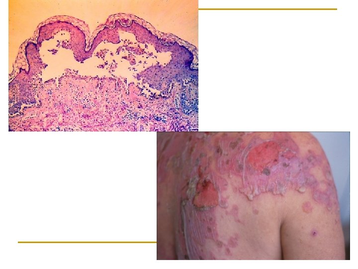 Pénfigo n n Afecta cohesión de células intraepidermcas. Produce ampollas flácidas y erosiones dolorosas de piel y mucosas.