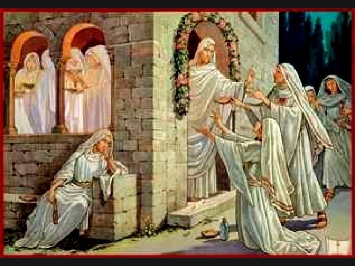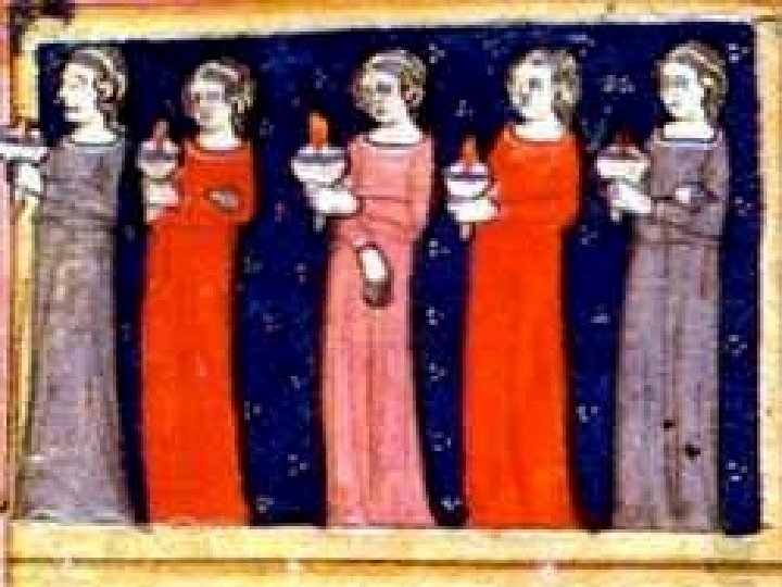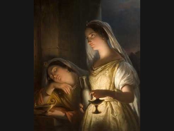 Dal Vangelo secondo Matteo (25, 1 -13) 1 2 In quel tempo, Gesù disse ai suoi discepoli questa parabola: «Il regno dei cieli sarà simile a dieci vergini che presero le loro lampade e uscirono incontro allo sposo. 3 Cinque di esse erano stolte e cinque sagge; le stolte presero le loro lampade, ma non presero con sé l’olio; 4 le sagge invece, insieme alle loro lampade, 5 presero anche l’olio in piccoli vasi. 6 Poiché lo sposo tardava, si assopirono tutte 7 e si addormentarono. 8 A mezzanotte si alzò un grido: 9 “Ecco lo sposo! Andategli incontro!”. 10 Allora tutte quelle vergini si destarono e prepararono le loro lampade. 11 Le stolte dissero alle sagge: “Dateci un po’ del vostro olio, 12 perché le nostre lampade si spengono”. 13 Le sagge risposero: “No, perché non venga a mancare a noi e a voi; 14 andate piuttosto dai venditori e compratevene”. 15 Ora, mentre quelle andavano a comprare l’olio, arrivò lo sposo e le vergini che erano pronte entrarono con lui alle nozze, 16 e la porta fu chiusa. 17 Più tardi arrivarono anche le altre vergini 18 e incominciarono a dire: “Signore, signore, aprici!”. 19 Ma egli rispose: “In verità io vi dico: non vi conosco”. 20 Vegliate dunque, perché non sapete 21 Né il giorno né l’ora. Vegliate dunque, perché non sapete né il giorno né l’ora» .