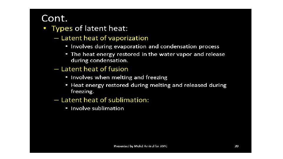 Condensation • The process of conversion of matter from its gaseous state to liquid state at specific condition of temperature and pressure is called condensation. • It is a reverse process of vaporization.