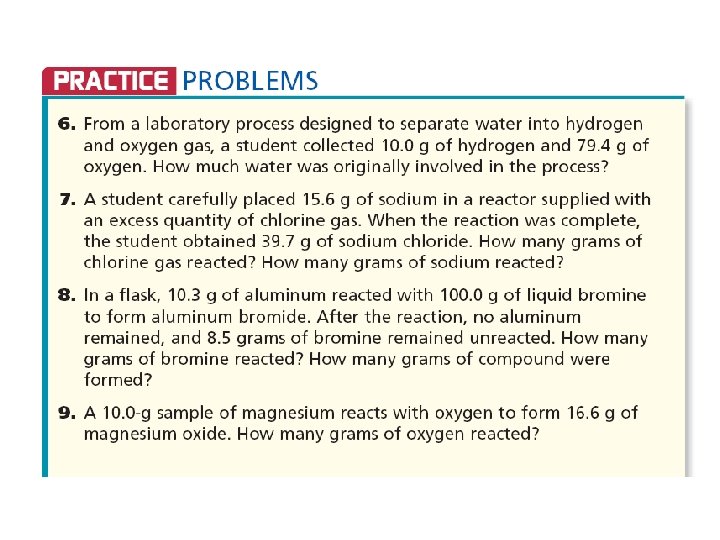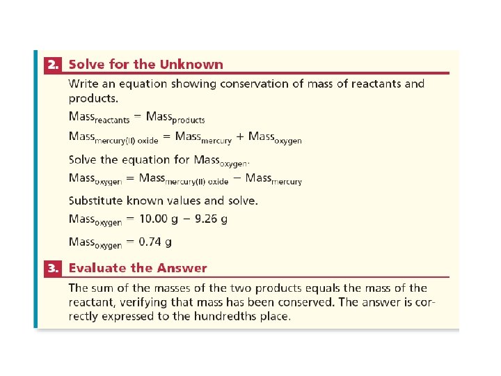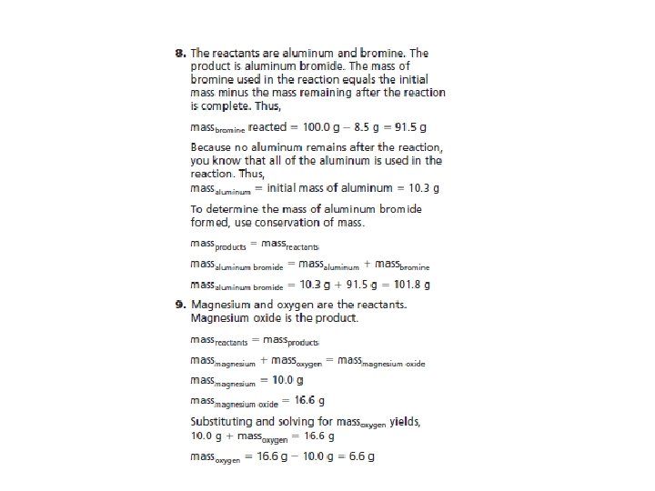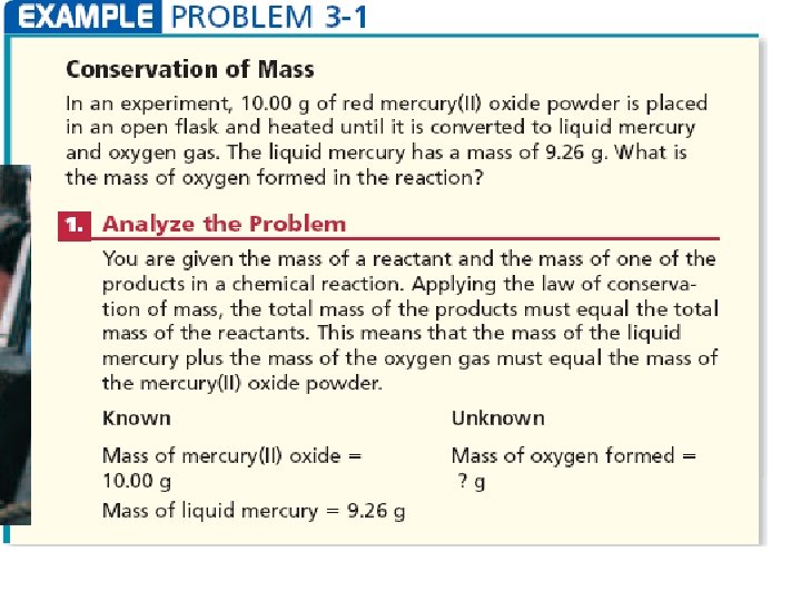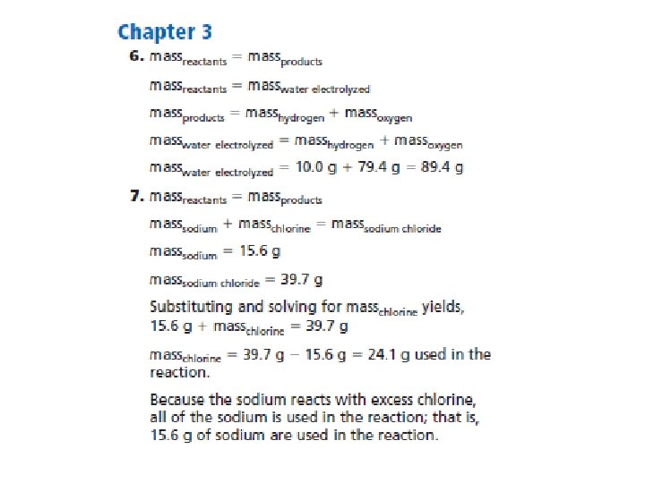 • The law of Conservation of Mass- mass is neither created nor destroyed during a chemical reaction; it is conserved Mass Reactants = Mass Products
