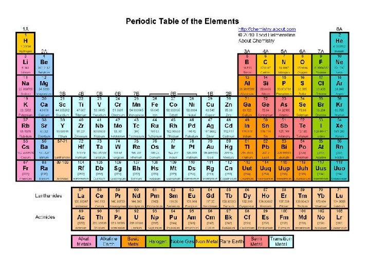 5. The elements of the left side of the table are: • Left are metals • 6. Right are non-metals – mostly gases • Column 8 = noble gases • Why?