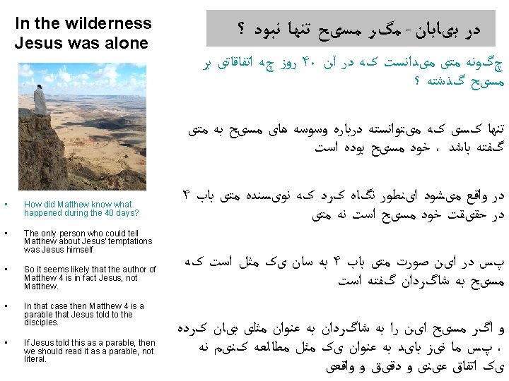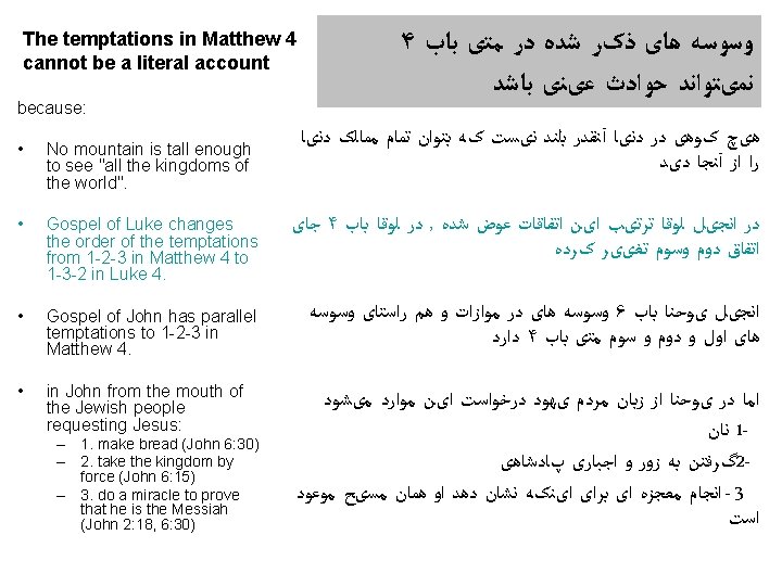 Matthew 4 The 3 temptations of Jesus Slides: 6 Download presentation ﻣﺘی ۴ Matthew 4 : The 3 temptations of Jesus